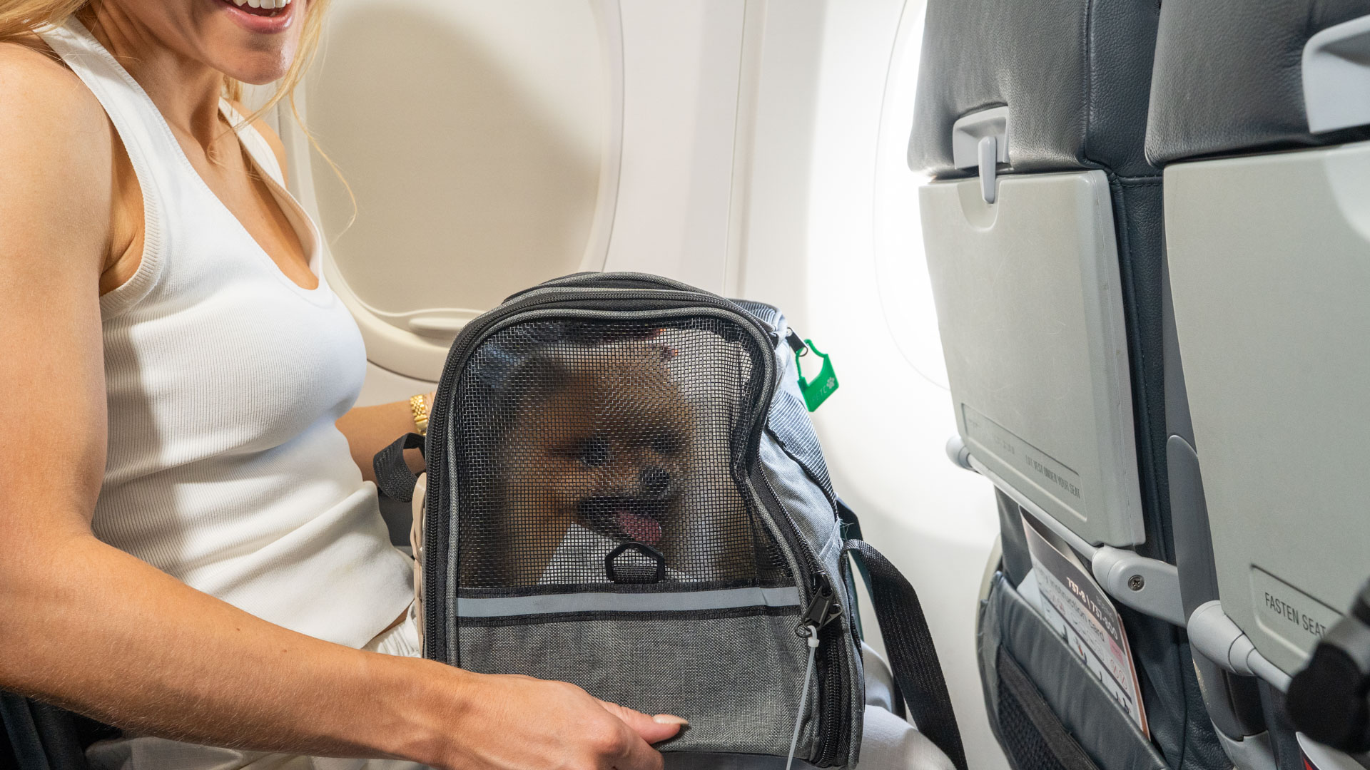 Small dogs and cats under 8kg that fit in an approved carrier can now be carried onboard for a one-way fee of $149. There’s a limit of four pets per flight, and they must be seated in 18A, 18F, 20A or 20F.