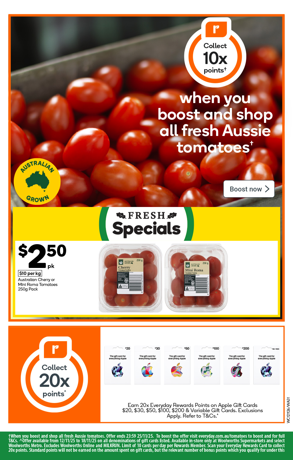 Week 10 From 5 March 2025 20x Flybuys points on CN Her, Him, Baby, Gift and Restaurant gift cards 20x Everyday Rewards points on Apple gift cards